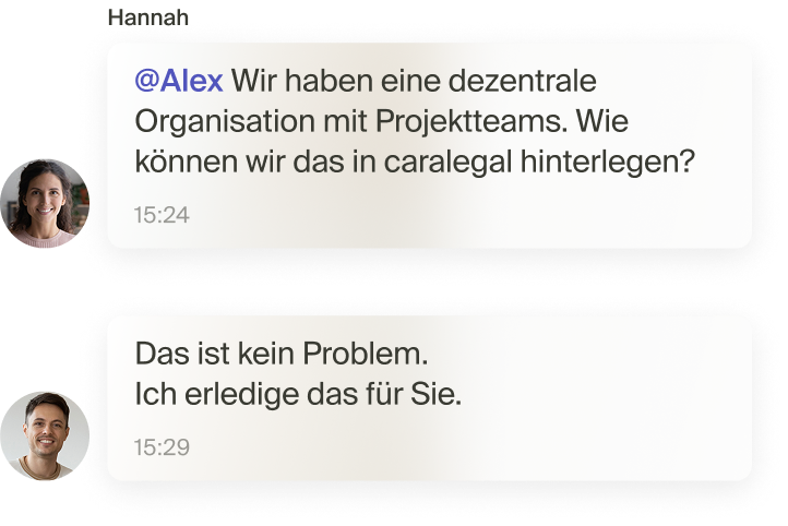 Ihr persönlicher Customer Success Manager unterstützt Sie bei der Konzeption, beim Rollout und dem Optimieren von caralegal.